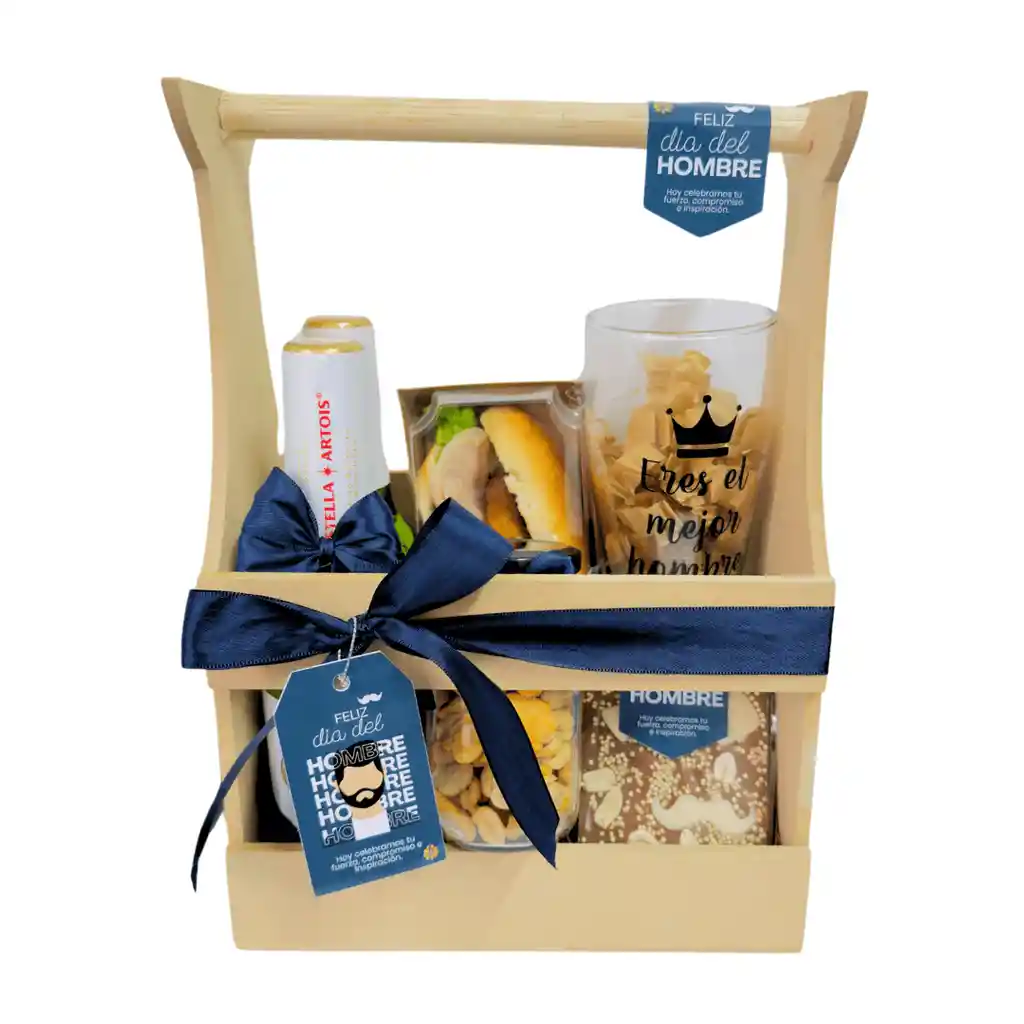 Brunch Homenaje: Sorprende con una combinación deliciosa y equilibrada que incluye 2 Cerveza stella artois, Tarrito de snacks, Vaso cervecero, Chocolatina personalizada, Sandwich (pan Árabe, Pollo apanado, Jamón , Queso, lechuga y tomate) Todo presentado en una base de madera de lujo ¡Te obsequiamos una tarjeta con el mensaje especial que desees, envíanoslo por el chat! Un detalle perfecto para cualquier ocasión. 🎁✨ REF: ANC01