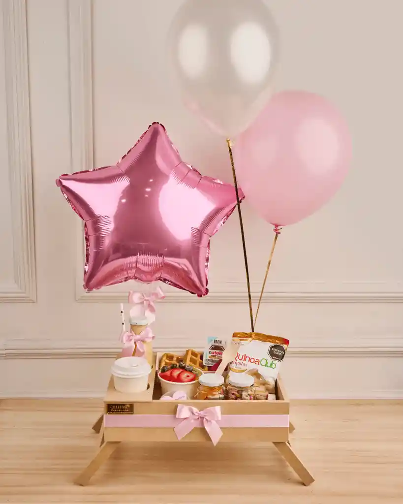 ¿Cómo pedir Regalo Día Del Niño Mesita De Madera Infantil Y Globos De Estrella Para Niña, Waffles, Sandwich. Desayuno Sorpresa en Rappi?