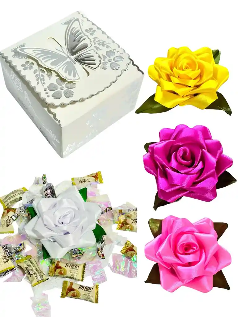 Regalo Especial Caja Mariposa y Rosa Eterna Blanca o Rosada o Fucsia o Amarilla - Regalo feliz Dia - Dia de Amor y Amistad