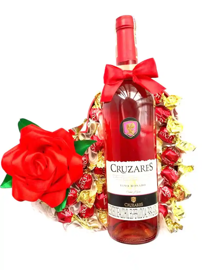 Regalo Especial Corazon Feliz con Vino y chocolates - Regalo Feliz cumpleaños - Regalo feliz dia - Regalo Amor y Amistad