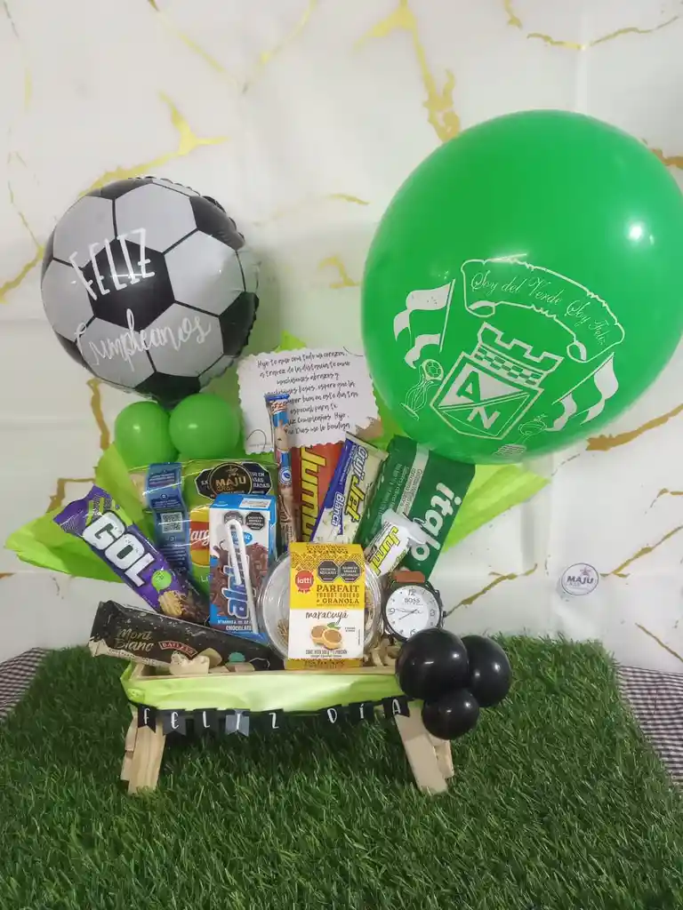 hermosa ancheta deportiva decorada con el equipo que desees escribenos a solicitud especial que equipo te gustaria , contiene dulces lacteos y reloj anti goteos