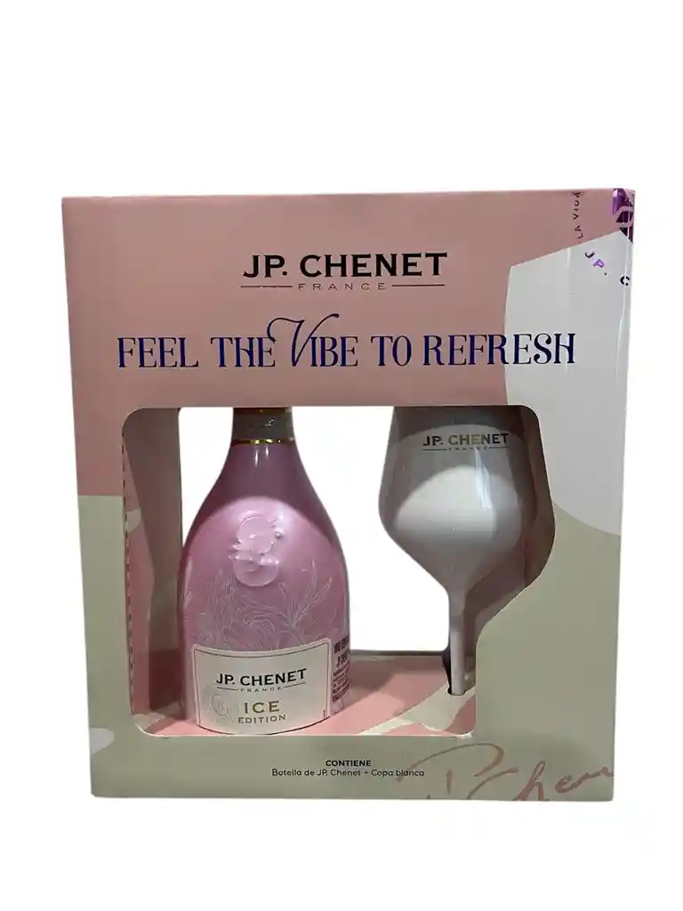 Caja regalo con botella JP -CHENET 750ml + COPA LANCA para servirlo con estilo.