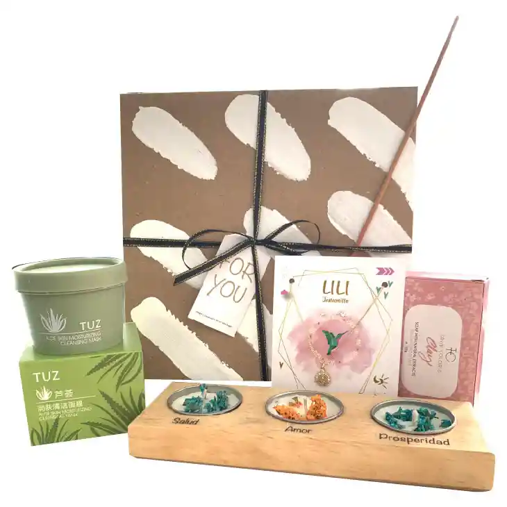 SET COLLAR Y ARETES VIRGEN LILI JARAMILLO EN ACERO CON BAÑO EN ORO, CANDELABRO CON VELAS DE FLORES DISECADAS, MASCARILLA TUZ DE ALOE (Registro: NSOC96184-19CO) JABÓN DE ARCILLA DESCONGESTIONANTE DE PIEL TRUE COLOR´S (NSOC61004-14CO) , ANTIFAZ CON ALMOHADILLA DE GEL PARAR TERAPIA DE FRIO Y VARITA DE INCIENSO