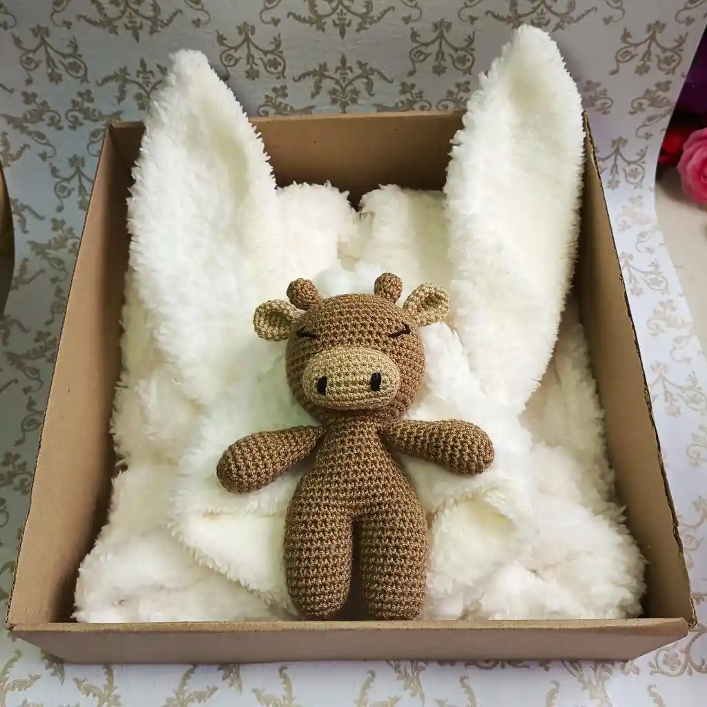 Caja de regalo diseñada para darle la bienvenida al bebé en sus primeros meses de vida, un bello y delicado detalle que contiene elementos que harán más cálida esta maravillosa experiencia. Excelente regalo para el nacimiento, baby shower Incluye: 1 Muñeco de apego en crochet tejido a mano, suave y 1 delicado mameluco en tela ovejera (0-6 meses). Este kit de regalo viene empacado delicadamente con una tarjeta de dedicatoria, déjanos un comentario para escribir tu mensaje especial. El diseño de muñeco a crochet varia según disponibilidad de inventario