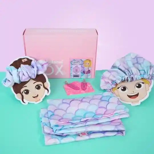 La Beautyland Box Hair Care colección Sirena fue creada para cuidar el cabello de las niñas con suavidad y magia. Incluye accesorios premium anti frizz que protegen, suavizan y mantienen el brillo natural mientras ella duerme o juega. ✨ ¿Qué incluye esta Box? 💖 Gorro anti frizz de satín (doble faz) 💗 Funda anti frizz para almohada 🎀 Scrunchie de satín 🌸 2 ganchitos de cabello Edad recomendada: 4 a 12 años Talla seleccionada 8 a 12 años Beneficios mágicos: Reduce el frizz Evita enredos durante la noche Protege el cabello rizado, liso u ondulado Suavidad y brillo natural cada mañana Rutina fácil que fomenta autocuidado y responsabilidad