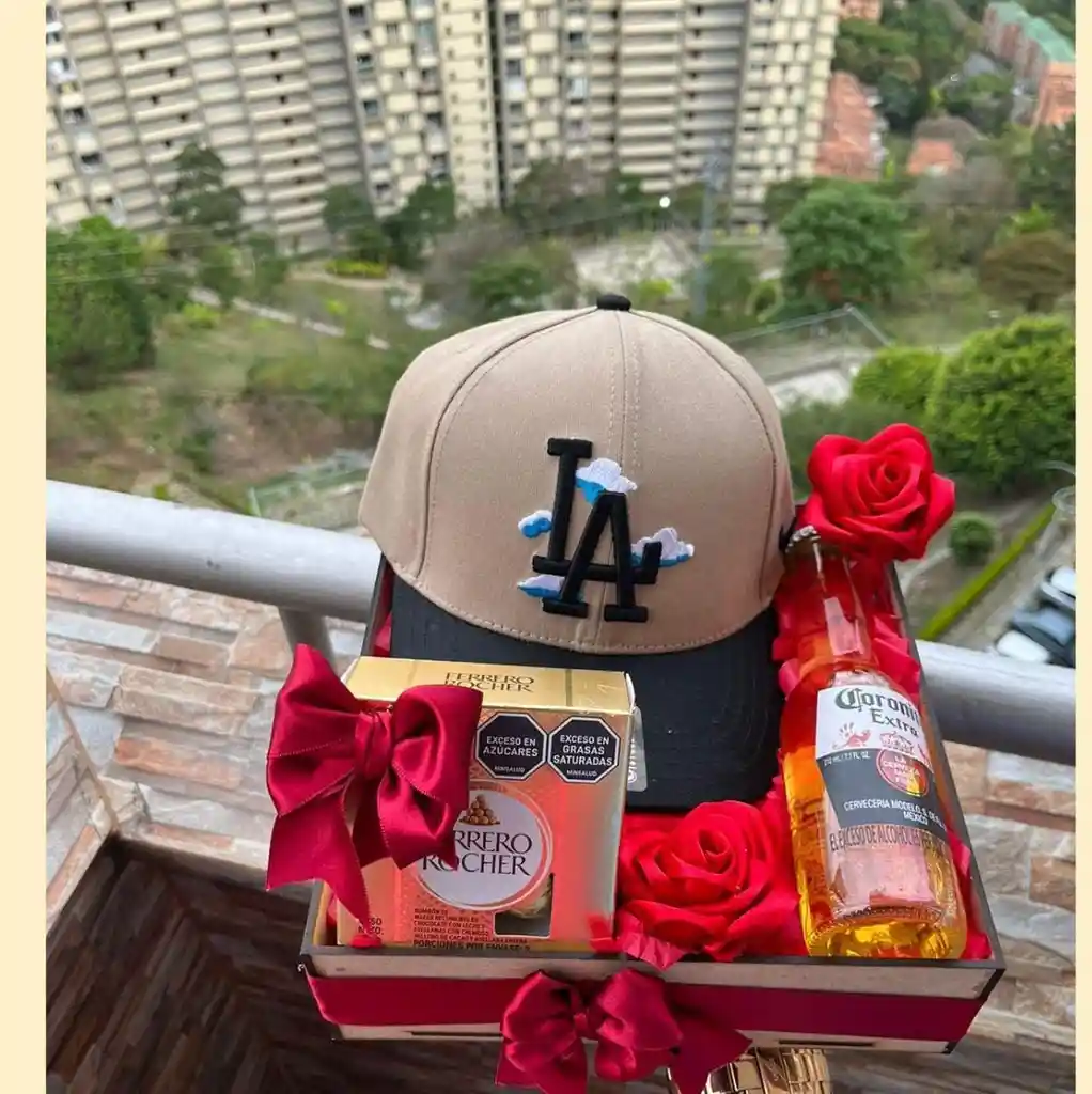 caja decorada chocolates ferrero cerveza rosas eternas 1 gorras de tu preferencia, (una vez realizado el pedido le enviamos catálogo de gorras)