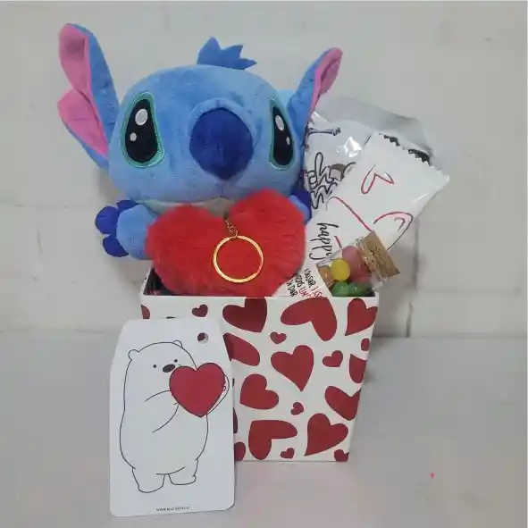 ¡GRACIAS POR ELEGIRNOS PARA AYUDARTE A SORPRENDER =) ! NUESTROS DETALLES SON PERFECTOS PARA EL MOTIVO QUE DESEES ♥ EN MARCARTE MANEJAMOS TARJETAS GENERICAS EJEMPLO (CUMPLEAÑOS - AMOR - GRADO - DAMA - CABALLERO - NIÑOS) POR FAVOR INDICANOS EN EL CHAT DE RAPPI EL MOTIVO DE TU DETALLE PARA COLOCAR LA TARJETA ADECUADA ESTA LINDA BOX INCLUYE: PELUCHE STICH - CHOCOGALLETA - CHOCMELO - FRASCO CON GOMITAS - LLAVERO DE PELUCHE -CHOCOLATES BIANCHI - CAJA CORAZONES NOTA: LOS PRODUCTOS PUEDEN VARIAR SEGUN DISPONIBILIDAD E LA TIENDA