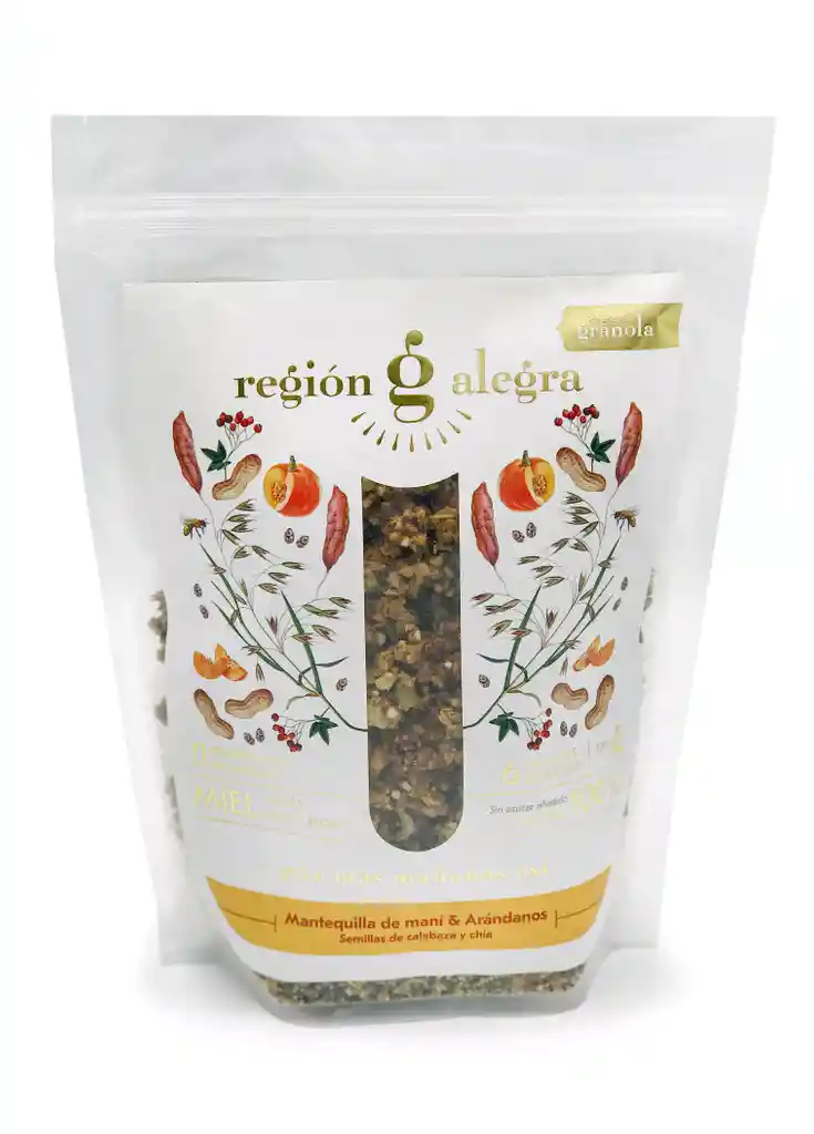 Granola de mantequilla de maní con arándanos, semillas de calabaza y chía