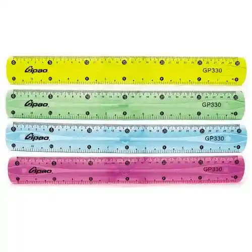 herramienta práctica, resistente y versátil, diseñada para acompañarte en tareas escolares, universitarias, de oficina o manualidades. Su material flexible permite doblarla sin riesgo de que se quiebre, convirtiéndola en una opción duradera y cómoda de usar. Ficha Técnica Longitud: 30 cm Material: Plástico flexible de alta resistencia Características: No se rompe ni se deforma fácilmente Excelente visibilidad gracias a sus colores fluorescentes Medición clara y precisa Colores disponibles: Amarillo, Verde, Azul y Fucsia (Los envíos se realizan según disponibilidad. Si deseas un color específico, por favor escríbenos al chat antes de finalizar tu compra.) ¿Para qué sirve? La regla flexible GP330 es ideal para: Trazar líneas rectas con precisión Realizar trabajos escolares y universitarios Proyectos de diseño, dibujo técnico y manualidades Llevar en estuches o mochilas sin preocuparte por quiebres Actividades que requieren una herramienta duradera y liviana