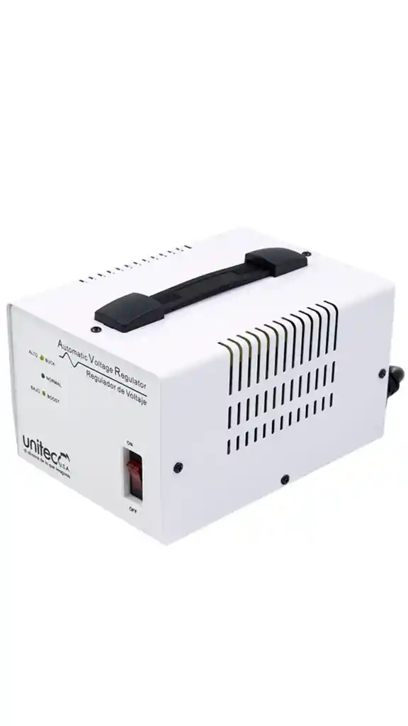 REGULADOR DE VOLTAJE UNITEC DE 2000VA REALES CON 8 TOMAS PROTEGIDAS Ideal para equipos de alto consumo tanto en el hogar como en la oficina CARACTERÍSTICAS • 8 Tomas de protección de dispositivos periféricos. • 4 tomas reguladas y 4 tomas de protección de voltaje. • Regulador automático de altos y bajos voltajes (picos de voltaje) • Protección de teléfonos, internet, fax, ADSL • Fácil de usar con leds indicadores • Cavidad para la recolección de cables ESPECIFICACIONES • CAPACIDAD 2000VA/1000W • No. FASES Monofásico • ENTRADA Voltaje normal 115VAC Frecuencia 60Hz Tensión de entrada 86-138VAC • SALIDA Voltaje en rango de salida 115VAC Número de salidas 8 (nema 5-15R) Protección de teléfono y modem RJ-11/45 Potencia aparente nominal de salida 2000va Potencia activa nominal de salida 1000 W • DIMENSIONES En milímetros 89.5*120*281mm Temperatura trabajo 0-40C 32-104F Nivel de ruido 40Db • AMBIENTE DE TRABAJO Humedad relativa 95% (No condensado). • Cable: 1 METRO