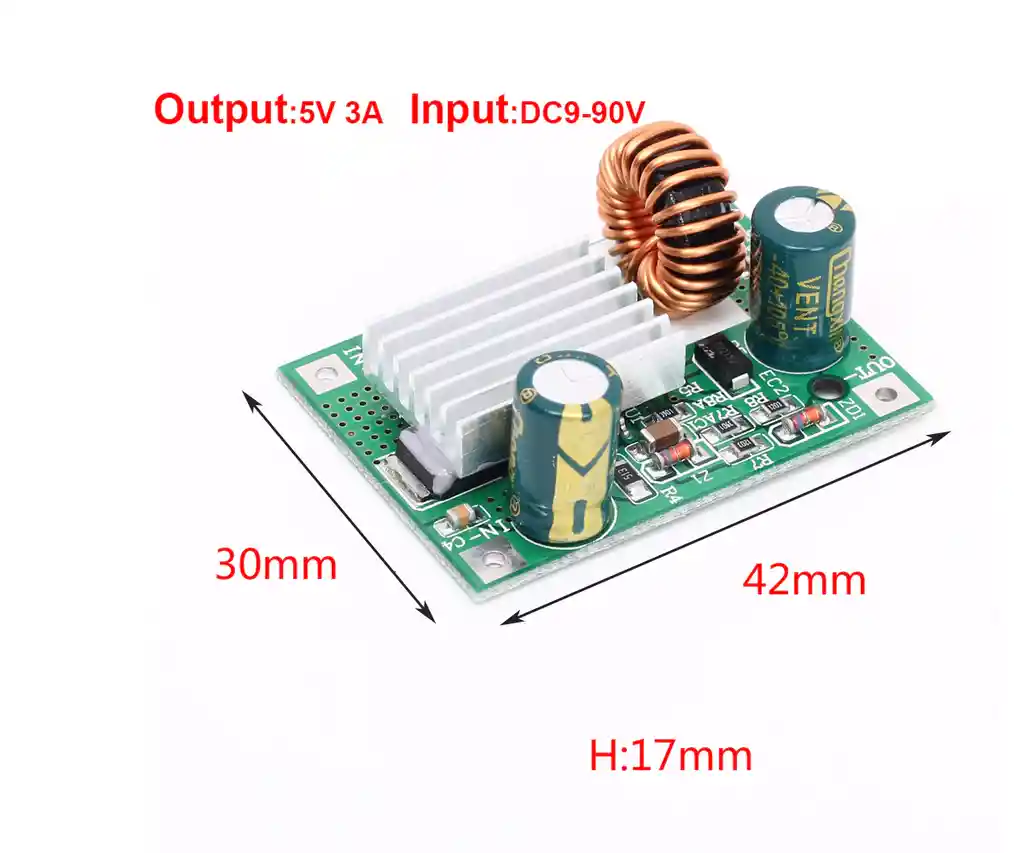 Es un módulo de fuente de alimentación de bajada de corriente constante de voltaje constante de CC. Se puede utilizar como módulo de fuente de alimentación de buck ordinario, cargador y controlador de corriente constante LED. Simple y eficiente, práctico. Alto voltaje de entrada; Salida de voltaje estable; Soporta protección contra la temperatura; Soporta protección contra sobretensiones; Soporte de protección contra cortocircuitos; Bajo consumo de energía; Admite salida de corriente constante de voltaje constante; Función de carga de apoyo; Con disipador de calor y mantener una buena disipación de calor. Parámetros: Nombre del producto: DC 9-90V a 5V 3A Step Down Power Supply Module Tensión de trabajo: DC 9-90V a 5V 3A (Mantener la entrada es al menos 4.0V alta que la salida) Voltaje de salida: DC 5V corriente de salida: 3A Potencia de salida: 15W Eficiencia de conversión: alrededor del 96% (cuanto menor es el voltaje diferencial, mayor es la eficiencia) Frecuencia de trabajo: 140 kHz Arrancador suave: Sí (falla en carga de alta potencia) Protección contra la temperatura: sí Protección contra sobretensiones: sí Protección de cortocircuito: sí Rango de temperatura de trabajo: -40 c ~ 85 c Rango de humedad de trabajo: 0% -95% RH pasos: Conecte el voltaje de entrada derecho en el terminal de entrada. Encienda la fuente de alimentación. Compruebe el voltaje de salida por voltímetro y amperímetro. Conectar carga. Nota: Es un módulo de fuente de alimentación descendente, por lo tanto, mantenga la entrada con al menos 4.0 V de alto que la salida. La entrada y la salida son no aisladas, seguras y confiables. Usos: Fuente de alimentación ordinaria; Cargador de batería; Potencia de accionamiento 3> .LED; Conversión de potencia. LA COMPRA INCLUYE: 1X REGULADOR CONSTANTE DC DC 9-90V a 5V 3A