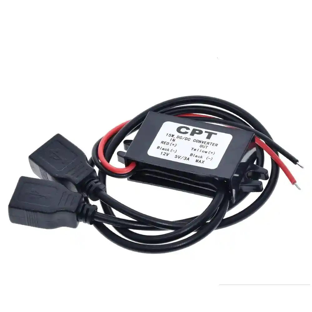 Este modulo no es BUCK. Utilice el proceso de fabricacion del modulo regulador ultrafino del interruptor integrado importado y la tecnologia de rectificacion sincrona para que la tasa de conversion sea superior al 96%, ademas, el valor calorifico es extremadamente bajo. Este modulo esta recubierto con epoxi, por lo que es resistente al agua, a prueba de golpes, a prueba de humedad, antipolvo e ignifugo. El modulo se jacta de la funcion de proteccion automatica cuando sobretension, sobrecorriente, sobretemperatura y frenado por cortocircuito y restablece el trabajo normal despues de las condiciones. Voltaje de entrada: DC 12V Voltaje de salida: 5V Corriente de salida: 3A Max Temperatura de funcionamiento: -40C ~ + 85C Longitud del cable de entrada-salida: 10 cm ~ 13 cm De color negro Tamaño: 4.6 x 2.7 x 1.4cm Peso: 45g Se puede utilizar para pantallas LED de automoviles, GPS, MP3, DVD para automoviles MP4, reproductor de disco duro y estereo. No se puede usar para iPhone, iPod, tableta, navegacion GPS, tacografo, altavoces USB LA COMPRA INCLUYE: 1X REGULADOR VOLTAJE CONSTANTE USB 12V a 5V