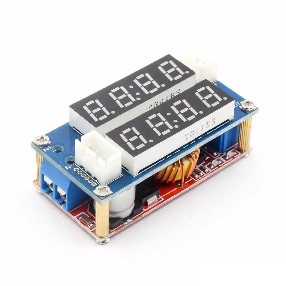 Naturaleza del modulo: modulo reductor no aislado Rectificacion: Rectificacion no sincrona. Voltaje de entrada: 5V-30V Voltaje de salida: 0.8V-29V Corriente de salida: maximo 5A (mas de 3A para reforzar el calor) Eficacia de conversion: 95% (la mas alta) Frecuencia de conmutacion: 300KHz Ondulacion de salida: 50 mV (max.) Ancho de banda de 20 M Regulacion de la carga: +-0.5% Regulacion de voltaje: +- 2.5% Temperatura de funcionamiento: -40 a +85 Propiedades del instrumento Nombre del modulo: Voltimetro actual Precision de la medida: 0.1% Tiempo de actualizacion: unos 200 ms Pantalla: doble 4 0,28 "tubo digital Rango de corriente: 0A-5A Rango de voltaje: 5V-30V Corriente de funcionamiento: menos de 15mA Color de la pantalla: rojo Temperatura de almacenamiento: -10 C a + 65 C. Impedancia de entrada: 50 miliohmios. LA COMPRA INCUYE: 1X REGULADOR XL4015 VOLTAJE CORRIENTE 5A