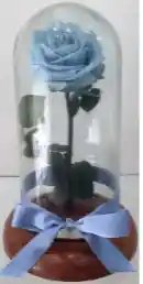 Rosa grande inmortalizada color Azul Celeste +base redonda madera+luz led+urna de cristal (Alto 30cm, Diametro 18cm) empacada en caja de regalo