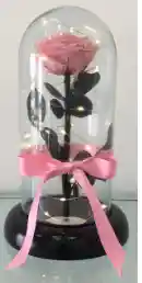Rosa grande inmortalizada color Rojo +base redonda madera+luz led+urna de cristal (Alto 30cm, Diametro 18cm) empacada en caja de regalo