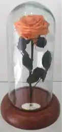 Rosa grande inmortalizada color Salmon +base redonda madera+urna de cristal (Alto 30cm, Diametro 18cm) empacada en caja de regalo
