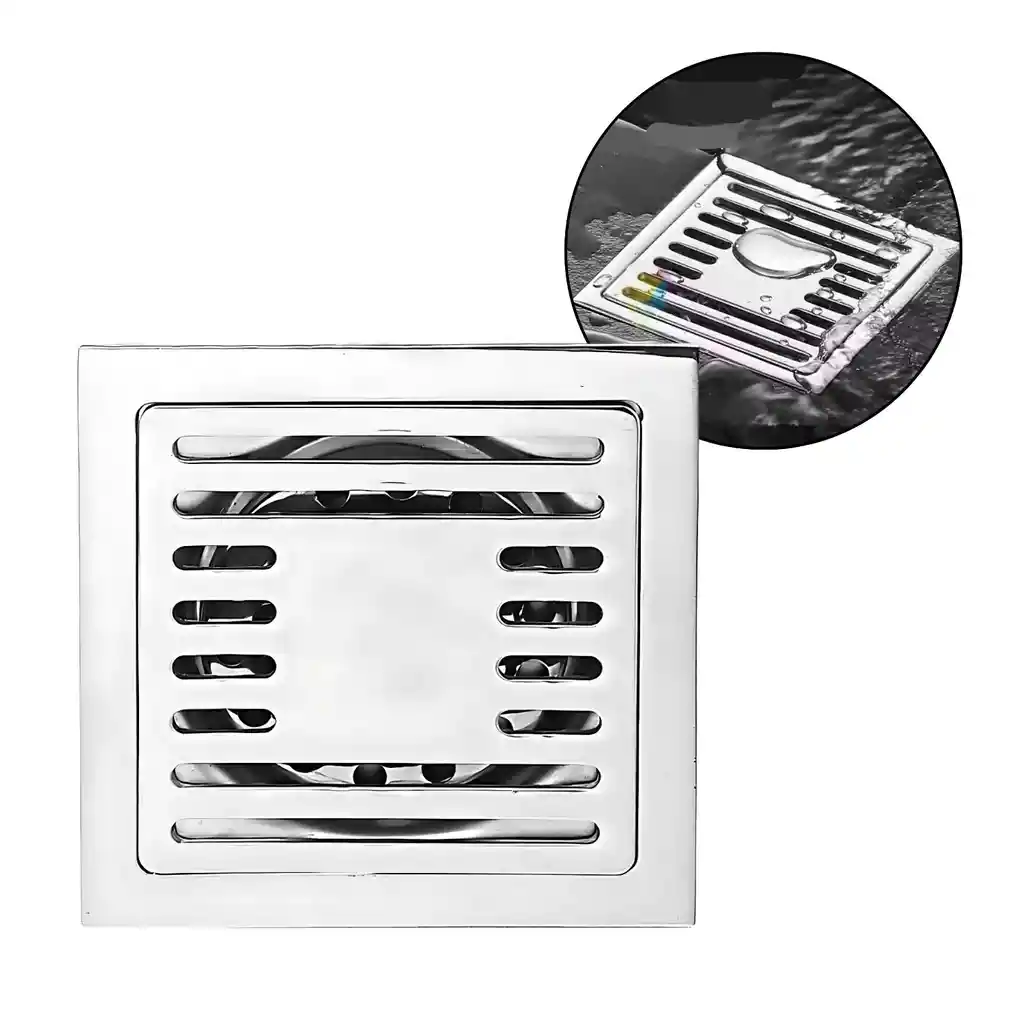 Rejilla de piso cuadrada en acero inoxidable 10x10 cm, ideal para baños, cocinas, zonas de lavado o patios. Su diseño elegante y funcional mejora la estética de los espacios, a la vez que brinda un drenaje eficiente y protección sanitaria. Fabricada en acero inoxidable de alta calidad, resistente al óxido y la corrosión. Su sistema permite un flujo rápido de agua por gravedad, y previene malos olores y el ingreso de insectos gracias a su eficaz diseño anticucarachas y antiolor. Medidas del producto: Largo exterior: 10 cm Ancho exterior: 10 cm Largo interno útil: 8 cm Altura total: 4,4 cm Diámetro de salida superior: 7,5 cm Diámetro de conexión inferior: 3,9 cm Espesor de tapa: 0,55 cm Características destacadas: Material: Acero inoxidable cromado de alta calidad Peso: 300 g Drenaje: Por gravedad eficiente Protección: Antiodor y anticucarachas Uso: Baños, duchas, cocinas, lavaderos, patios Instalación: Empotrada, de fácil adaptación Color: Cromo brillante Limpieza: Fácil mantenimiento, no se oxida Distribuido al por mayor y al detal por Pamo Colombia. Las imágenes, medidas y colores pueden presentar ligeras variaciones frente al producto físico.