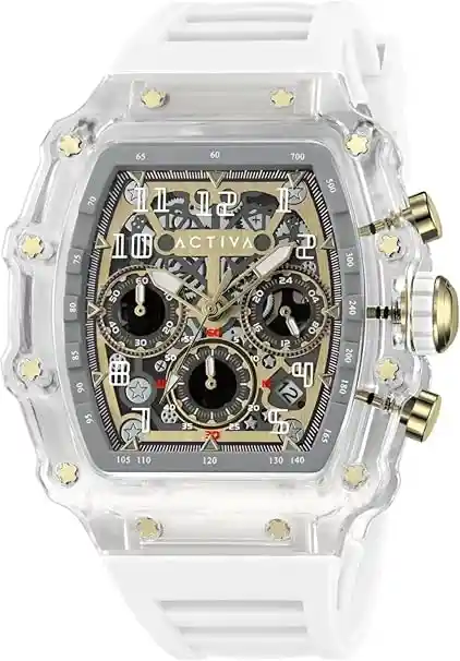 Reloj Activa By Invicta, caja de 44mm en plástico transparente, correa de silicona color Blanco. Producto Original y Nuevo.