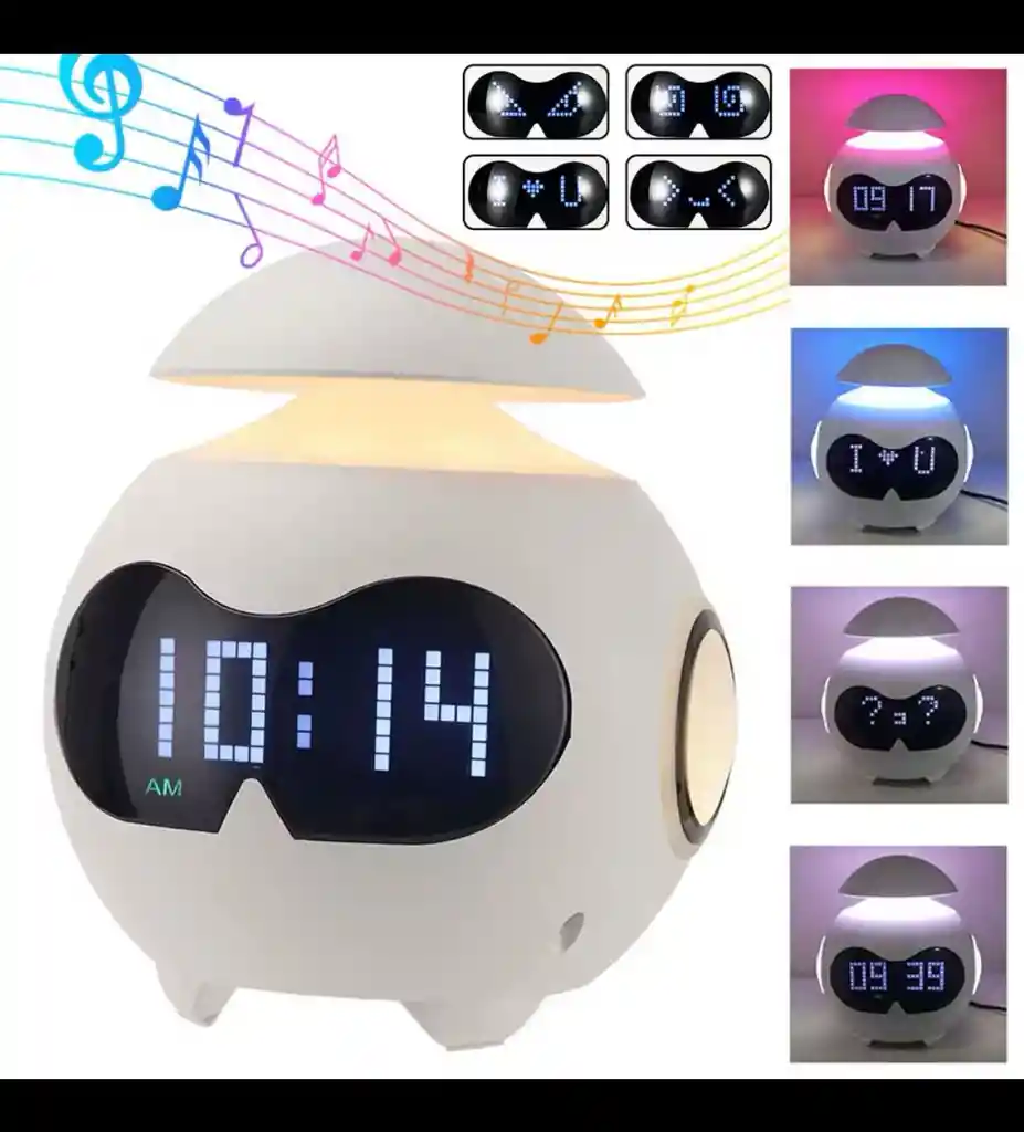 ✅RELOJ ESTILO ROBOT ✅ Reloj despertador Digital con luz de humor, dispositivo de mesa con Bluetooth, reproducción de música, expresión RGB, LED, luz nocturna,
