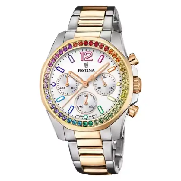 Referencia: F20608/2 Boyfriend Para Mujer Tamaño de la Caja 38.1 mm de Acero Inoxidable Tamaño Del Pulso 210 mm de Acero Inoxidable Color Multicolor Resistencia al Agua 100 Metros.