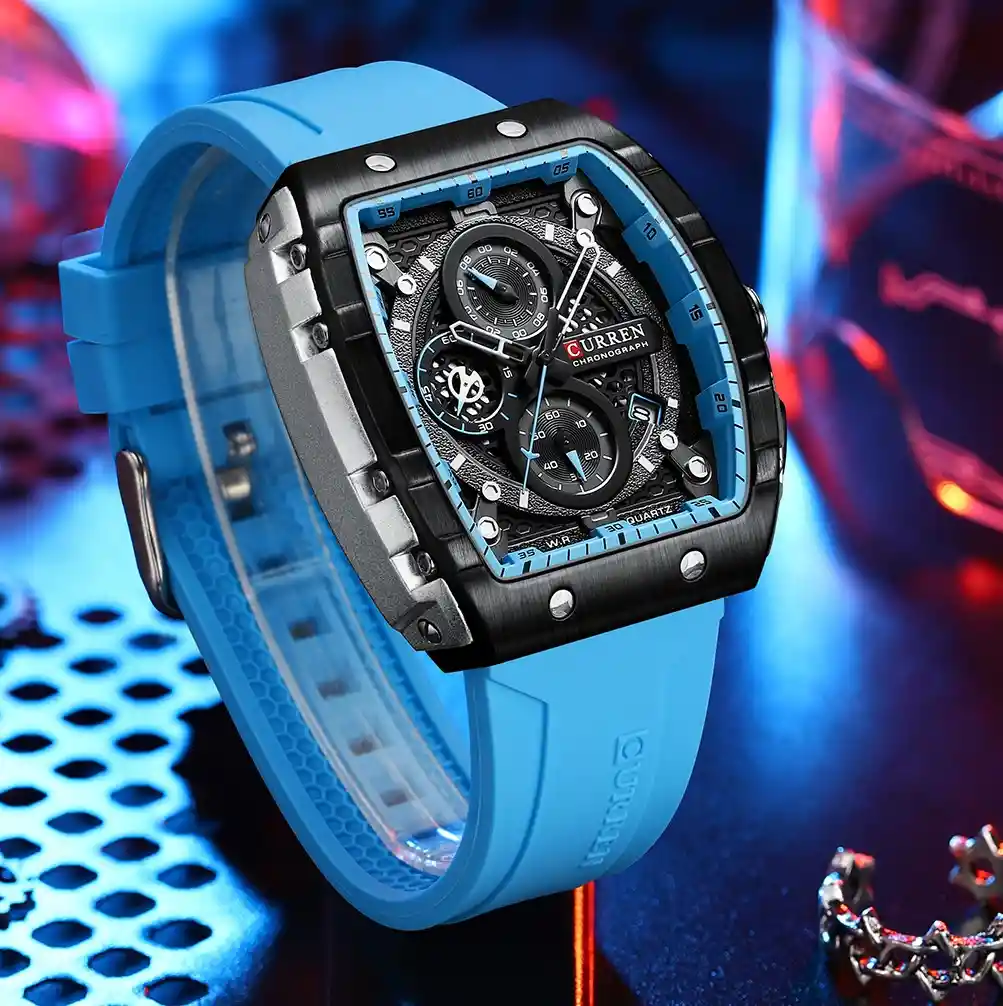 Reloj para Hombre Marca: Curren Modelo: 8442 Estilo: A la moda y casual Material del pulso: Siliconado Material de la caja: Acero inoxidable Tipo de cierre: Con hebilla Diámetro de la caja: 52 mm Diámetro del dial: 36 mm Ancho del pulso: 23 mm Grosor de la caja: 15 mm Longitud del pulso: 20,5 cm Peso del reloj: 98 g Material del vidrio: Hardlex Movimiento: Cuarzo Visualización: Analógico Característica: Calendario y cronógrafos funcionales (segundero, minutero, 24 horas) Adecuado para el uso diario, resistente a salpicaduras y lluvia. No es adecuado para ducharse, bañarse, nadar, practicar snorkel, trabajos relacionados con el agua caliente agua salada y pescar.