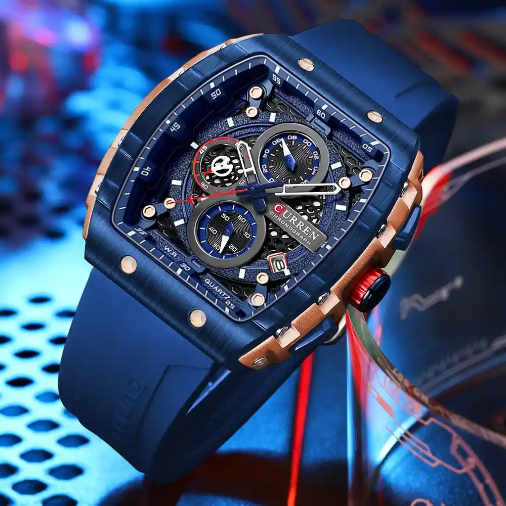 Reloj para Hombre Marca: Curren Modelo: 8442 Estilo: A la moda y casual Material del pulso: Siliconado Material de la caja: Acero inoxidable Tipo de cierre: Con hebilla Diámetro de la caja: 52 mm Diámetro del dial: 36 mm Ancho del pulso: 23 mm Grosor de la caja: 15 mm Longitud del pulso: 20,5 cm Peso del reloj: 98 g Material del vidrio: Hardlex Movimiento: Cuarzo Visualización: Analógico Característica: Calendario y cronógrafos funcionales (segundero, minutero, 24 horas) Adecuado para el uso diario, resistente a salpicaduras y lluvia. No es adecuado para ducharse, bañarse, nadar, practicar snorkel, trabajos relacionados con el agua caliente agua salada y pescar.