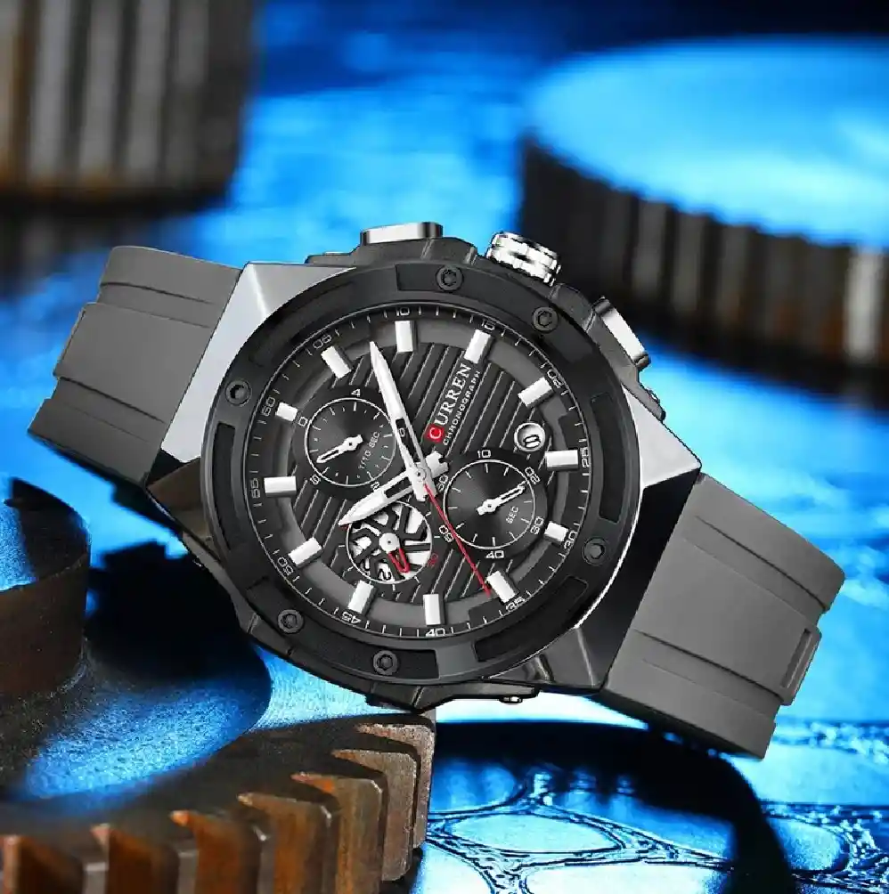Reloj para Hombre Marca: Curren Modelo: 8442 Estilo: A la moda y casual Material del pulso: Siliconado Material de la caja: Acero inoxidable Tipo de cierre: Con hebilla Diámetro de la caja: 52 mm Diámetro del dial: 36 mm Ancho del pulso: 23 mm Grosor de la caja: 15 mm Longitud del pulso: 20,5 cm Peso del reloj: 98 g Material del vidrio: Hardlex Movimiento: Cuarzo Visualización: Analógico Característica: Calendario y cronógrafos funcionales (segundero, minutero, 24 horas) Adecuado para el uso diario, resistente a salpicaduras y lluvia. No es adecuado para ducharse, bañarse, nadar, practicar snorkel, trabajos relacionados con el agua caliente agua salada y pescar.