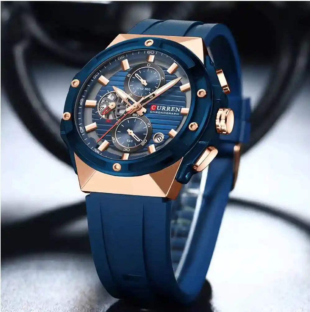 Reloj para Hombre Marca: Curren Modelo: 8442 Estilo: A la moda y casual Material del pulso: Siliconado Material de la caja: Acero inoxidable Tipo de cierre: Con hebilla Diámetro de la caja: 52 mm Diámetro del dial: 36 mm Ancho del pulso: 23 mm Grosor de la caja: 15 mm Longitud del pulso: 20,5 cm Peso del reloj: 98 g Material del vidrio: Hardlex Movimiento: Cuarzo Visualización: Analógico Característica: Calendario y cronógrafos funcionales (segundero, minutero, 24 horas) Adecuado para el uso diario, resistente a salpicaduras y lluvia. No es adecuado para ducharse, bañarse, nadar, practicar snorkel, trabajos relacionados con el agua caliente agua salada y pescar.