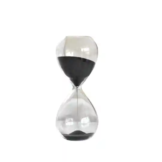 Reloj de arena 1 minuto, color negro. Temporizador pequeño y decorativo ideal para escritorio, meditación breve, juegos o cocina rápida. Diseño elegante y compacto.