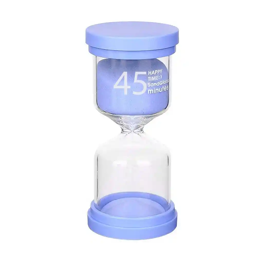 Los hermosos relojes de arena decorativos marcan tendencia en la actualidad con sus diseños únicos y exclusivos, que podrás lucir en los diferentes espacios de tu hogar y oficina. /// El reloj de arena mide un tiempo especifico //// Ficha Técnica: Tiempo calculado: 45 minutos Altura: 14,2 cm Largo: 5 cm Ancho: 5 cm Material: Plastico- Cristal - Arenilla Términos de Garantía: Para defectos de fábrica o retractos: Por favor revise el producto apenas lo reciba y antes de usarlo. No aplican ley de retracto o defectos de fábrica luego de usar el producto. Se manejan máximo 5 días para reportar defectos de fábrica (por ejemplo, producto funciona mal, piezas faltantes, rotas, etc). Para hacer efectiva la devolución el producto debe devolverse con el empaque original, el cual debe estar en buen estado, incluir todos los documentos y las partes completas y sin daños. Los cuidados y recomendaciones para mantener un producto en buen estado son los siguientes: No aplicarle perfumes ni cremas directamente, no mojarlos, no dejarlos caer y procurar limpiarlos para retirar suciedad.