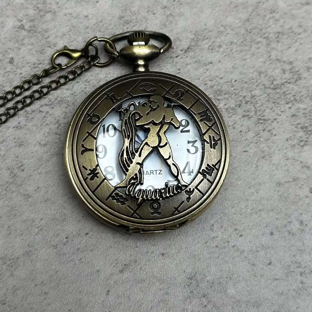reloj de bolsillo ocn cadena del signo zodiacal acuario