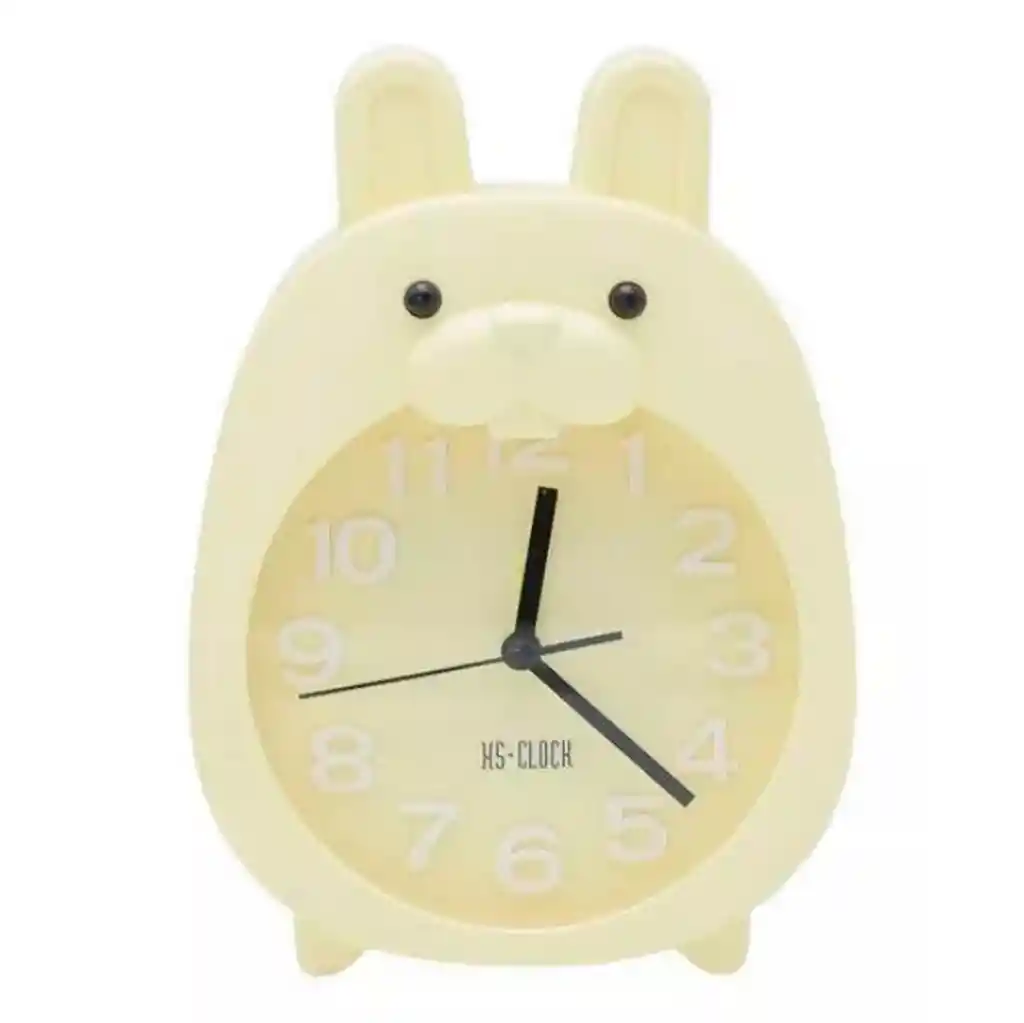 Este encantador reloj analógico en forma de conejo es ideal para las habitaciones de niñas y niños. Minimista y funcional, puede colocarse en la mesa de noche o en la pared. Su diseño adorable incluye una alarma integrada fácil de configurar, perfecta para fomentar buenos hábitos de sueño. Funciona con batería, eliminando la necesidad de cables. Este reloj no solo decora, sino que también ayuda a los niños a gestionar su tiempo de manera efectiva. /// El reloj incluye bateria /// Ficha Técnica: Dimensiones: 18 cm x 13.3 cm x 4 cm Material: Plástico ABS seguro Alimentación: 1 Batería AA ( Incluida) _Para defectos de fábrica o retractos: _Por favor revise el producto apenas lo reciba y antes de usarlo. No aplican ley de retracto o defectos de fábrica luego de usar el producto. Se manejan máximo 5 días para reportar defectos de fábrica (por ejemplo, piezas faltantes, rotas, etc).