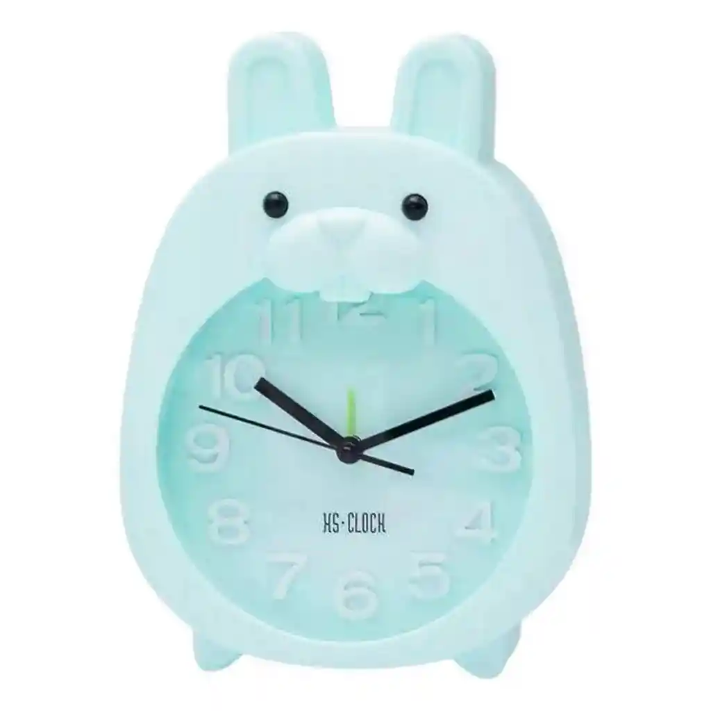 Este encantador reloj analógico en forma de conejo es ideal para las habitaciones de niñas y niños. Minimista y funcional, puede colocarse en la mesa de noche o en la pared. Su diseño adorable incluye una alarma integrada fácil de configurar, perfecta para fomentar buenos hábitos de sueño. Funciona con batería, eliminando la necesidad de cables. Este reloj no solo decora, sino que también ayuda a los niños a gestionar su tiempo de manera efectiva. /// El reloj incluye bateria /// Ficha Técnica: Dimensiones: 18 cm x 13.3 cm x 4 cm Material: Plástico ABS seguro Alimentación: 1 Batería AA ( Incluida) _Para defectos de fábrica o retractos: _Por favor revise el producto apenas lo reciba y antes de usarlo. No aplican ley de retracto o defectos de fábrica luego de usar el producto. Se manejan máximo 5 días para reportar defectos de fábrica (por ejemplo, piezas faltantes, rotas, etc).