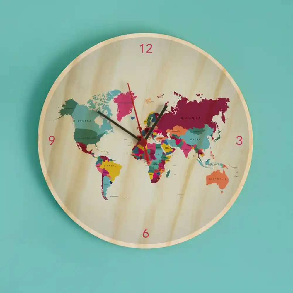 Reloj de pared en triplex e impreso directo sobre la madera , producto para interiores.Tamaño: 29 cm de diámetro x 1,5 cm de espesor.