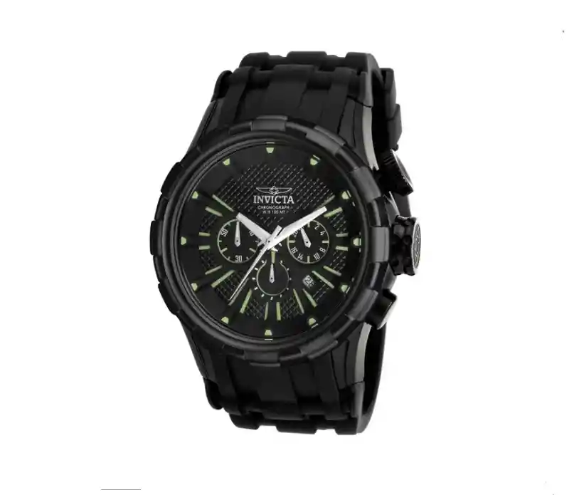 Caja robusta en acero inoxidable con correa negra, diseño deportivo y moderno, movimiento de cuarzo preciso y cristal resistente. Esfera grande de fácil lectura, indicadores marcados y buena resistencia al agua.