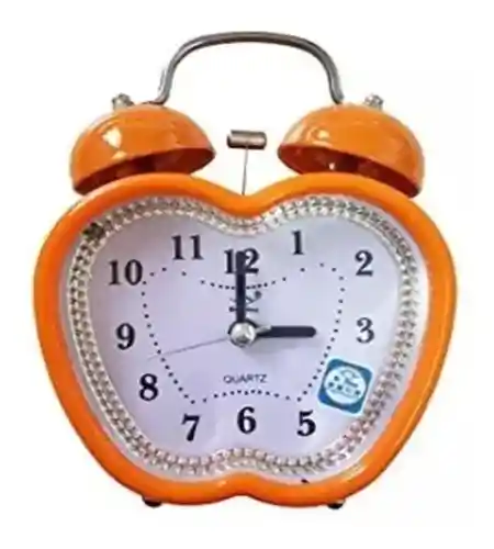 • Reloj despertador • Forma de manzana • Medidas: 13 X10 Centimetros • Color naranja • Presentacion en caja