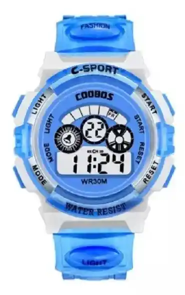 Reloj digital para niños que ilumina en la oscuridad Regalo adecuado para niños mayores de 8 años. Acerca de la impermeabilización: Resiste el agua de lluvia, el lavado de manos, la cara. No apto para la natación ni bañera. Función: impermeable, luminoso, calendario, cronómetro, reloj despertador y otras funciones múltiples. Especificaciones: Longitud: 23,5 cm Ancho: 3,4cm Grosor de la correa: 3mm Grosor del dial: 1,5 cm Material del espejo: Espejo de plástico Estilo de cierre: Hebilla Material de la hebilla: acero inoxidable Material de la correa: plástico Color: Azul Oscuro