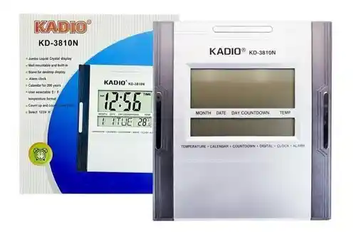 Reloj digital de pared con un diseño elegante y serio. Hora formato 12 horas con segundos e indicador AM/PM. Fecha en formato Mes/Día. Día de la semana (en inglés). Termómetro configurable en C o F. Panel trasero de configuración. Precisión a Temperatura normal: +- 60 segundos por mes. Sistema Calendario: Calendario automático programado desde el año 2000 al 2039. Alarma: Alarma diaria, alarma de despertador (7 repeticiones). Funciones de Termómetro: Gama de medición -50C a 70C (-58F a 158F). Cambio entre Celsius a Fahrenheit. Precisión de sensor de Temperatura: +-2C en la gama de 0C a 40C. Hora normal de 12/24 horas. Pilas: dos pilas de Tamaño AA. Duración de la pila: Aproximadamente 1 año. Operación de alarma de 1 minuto por día. Temperatura de operación: 0C a 40C.