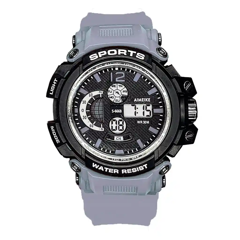 La marca de relojes deportivos Aimeike digitales resistentes al agua es una línea de relojes diseñada para personas activas y deportistas que necesitan un reloj duradero y confiable. Estos relojes están diseñados para soportar las condiciones más difíciles y extremas, incluyendo el agua y las actividades acuáticas. Además de ser resistentes al agua, estos relojes también son resistentes a los golpes y al desgaste, lo que los convierte en la opción ideal para actividades al aire libre y deportes extremos. Su diseño deportivo y moderno los hace también un accesorio perfecto para cualquier atuendo casual. // Nota: se envía el reloj su respectivo estuche // Ficha Técnica: Diámetro reloj caballero: 4.6 cm Longitud correa reloj caballero: 24 cm Grosor esfera: 1.5 cm Ideal para adultos y adolescentes Materiales: Poliuretano y silicona Funciones: Luz Led 7 colores, Cronometro, Alarma, Calendario y resistencia al agua. Términos de garantía: _Para defectos de fábrica o retractos: _Por favor revise el producto apenas lo reciba y antes de usarlo. No aplican ley de retracto o defectos de fábrica luego de usar el producto. Se manejan máximo 5 días para reportar defectos de fábrica (por ejemplo, piezas faltantes, rotas, etc). En cuanto a maquinaria se da tres meses de garantía, es decir el buen funcionamiento del producto. Para hacer efectiva la devolución el producto debe devolverse con el empaque original, el cual debe estar en buen estado, incluir todos los documentos y las partes completas y sin daños. Los cuidados y recomendaciones para mantener un producto en buen estado son los siguientes: No aplicarle perfumes ni cremas directamente, no mojarlos, no dejarlos caer y procurar limpiarlos para retirar suciedad.