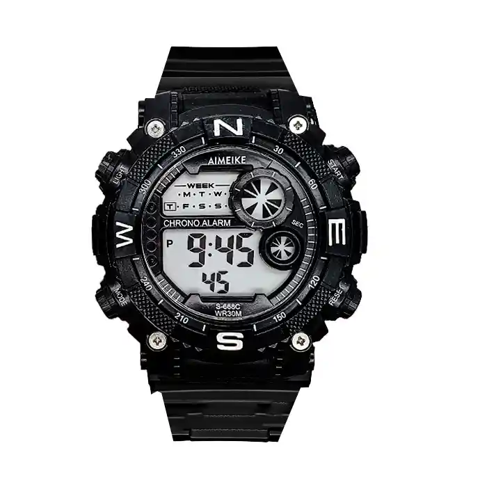 La marca de relojes deportivos Aimeike digitales resistentes al agua es una línea de relojes diseñada para personas activas y deportistas que necesitan un reloj duradero y confiable. Estos relojes están diseñados para soportar las condiciones más difíciles y extremas, incluyendo el agua y las actividades acuáticas. Además de ser resistentes al agua, estos relojes también son resistentes a los golpes y al desgaste, lo que los convierte en la opción ideal para actividades al aire libre y deportes extremos. Su diseño deportivo y moderno los hace también un accesorio perfecto para cualquier atuendo casual. // Nota: se envía el reloj su respectivo estuche // Ficha Técnica: Diámetro reloj caballero: 4.6 cm Longitud correa reloj caballero: 24 cm Grosor esfera: 1.5 cm Ideal para adultos y adolescentes Materiales: Poliuretano y silicona Funciones: Luz Led 7 colores, Cronometro, Alarma, Calendario y resistencia al agua. Términos de garantía: _Para defectos de fábrica o retractos: _Por favor revise el producto apenas lo reciba y antes de usarlo. No aplican ley de retracto o defectos de fábrica luego de usar el producto. Se manejan máximo 5 días para reportar defectos de fábrica (por ejemplo, piezas faltantes, rotas, etc). En cuanto a maquinaria se da tres meses de garantía, es decir el buen funcionamiento del producto. Para hacer efectiva la devolución el producto debe devolverse con el empaque original, el cual debe estar en buen estado, incluir todos los documentos y las partes completas y sin daños. Los cuidados y recomendaciones para mantener un producto en buen estado son los siguientes: No aplicarle perfumes ni cremas directamente, no mojarlos, no dejarlos caer y procurar limpiarlos para retirar suciedad.