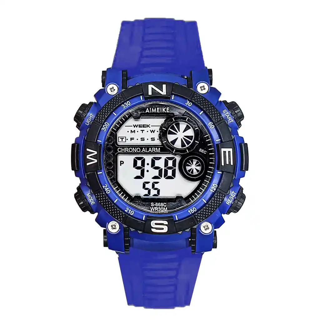La marca de relojes deportivos Aimeike digitales resistentes al agua es una línea de relojes diseñada para personas activas y deportistas que necesitan un reloj duradero y confiable. Estos relojes están diseñados para soportar las condiciones más difíciles y extremas, incluyendo el agua y las actividades acuáticas. Además de ser resistentes al agua, estos relojes también son resistentes a los golpes y al desgaste, lo que los convierte en la opción ideal para actividades al aire libre y deportes extremos. Su diseño deportivo y moderno los hace también un accesorio perfecto para cualquier atuendo casual. // Nota: se envía el reloj su respectivo estuche // Ficha Técnica: Diámetro reloj caballero: 4.6 cm Longitud correa reloj caballero: 24 cm Grosor esfera: 1.5 cm Ideal para adultos y adolescentes Materiales: Poliuretano y silicona Funciones: Luz Led 7 colores, Cronometro, Alarma, Calendario y resistencia al agua. Términos de garantía: _Para defectos de fábrica o retractos: _Por favor revise el producto apenas lo reciba y antes de usarlo. No aplican ley de retracto o defectos de fábrica luego de usar el producto. Se manejan máximo 5 días para reportar defectos de fábrica (por ejemplo, piezas faltantes, rotas, etc). En cuanto a maquinaria se da tres meses de garantía, es decir el buen funcionamiento del producto. Para hacer efectiva la devolución el producto debe devolverse con el empaque original, el cual debe estar en buen estado, incluir todos los documentos y las partes completas y sin daños. Los cuidados y recomendaciones para mantener un producto en buen estado son los siguientes: No aplicarle perfumes ni cremas directamente, no mojarlos, no dejarlos caer y procurar limpiarlos para retirar suciedad.