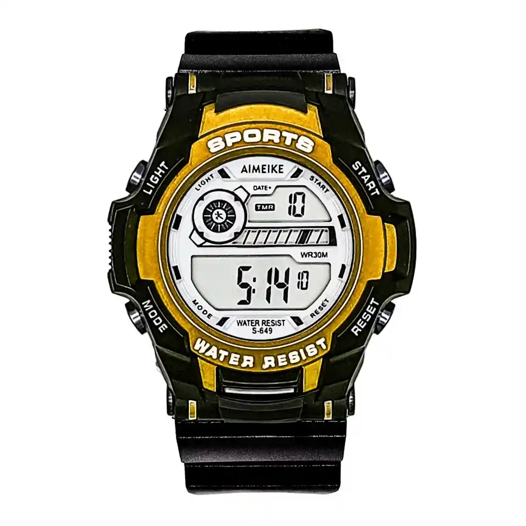 La marca de relojes deportivos Aimeike digitales resistentes al agua es una línea de relojes diseñada para personas activas y deportistas que necesitan un reloj duradero y confiable. Estos relojes están diseñados para soportar las condiciones más difíciles y extremas, incluyendo el agua y las actividades acuáticas. Además de ser resistentes al agua, estos relojes también son resistentes a los golpes y al desgaste, lo que los convierte en la opción ideal para actividades al aire libre y deportes extremos. Su diseño deportivo y moderno los hace también un accesorio perfecto para cualquier atuendo casual. // Nota: se envía el reloj su respectivo estuche // Ficha Técnica: Diámetro reloj caballero: 4.6 cm Longitud correa reloj caballero: 24 cm Grosor esfera: 1.5 cm Ideal para adultos y adolescentes Materiales: Poliuretano y silicona Funciones: Luz Led 7 colores, Cronometro, Alarma, Calendario y resistencia al agua. Términos de garantía: _Para defectos de fábrica o retractos: _Por favor revise el producto apenas lo reciba y antes de usarlo. No aplican ley de retracto o defectos de fábrica luego de usar el producto. Se manejan máximo 5 días para reportar defectos de fábrica (por ejemplo, piezas faltantes, rotas, etc). En cuanto a maquinaria se da tres meses de garantía, es decir el buen funcionamiento del producto. Para hacer efectiva la devolución el producto debe devolverse con el empaque original, el cual debe estar en buen estado, incluir todos los documentos y las partes completas y sin daños. Los cuidados y recomendaciones para mantener un producto en buen estado son los siguientes: No aplicarle perfumes ni cremas directamente, no mojarlos, no dejarlos caer y procurar limpiarlos para retirar suciedad.