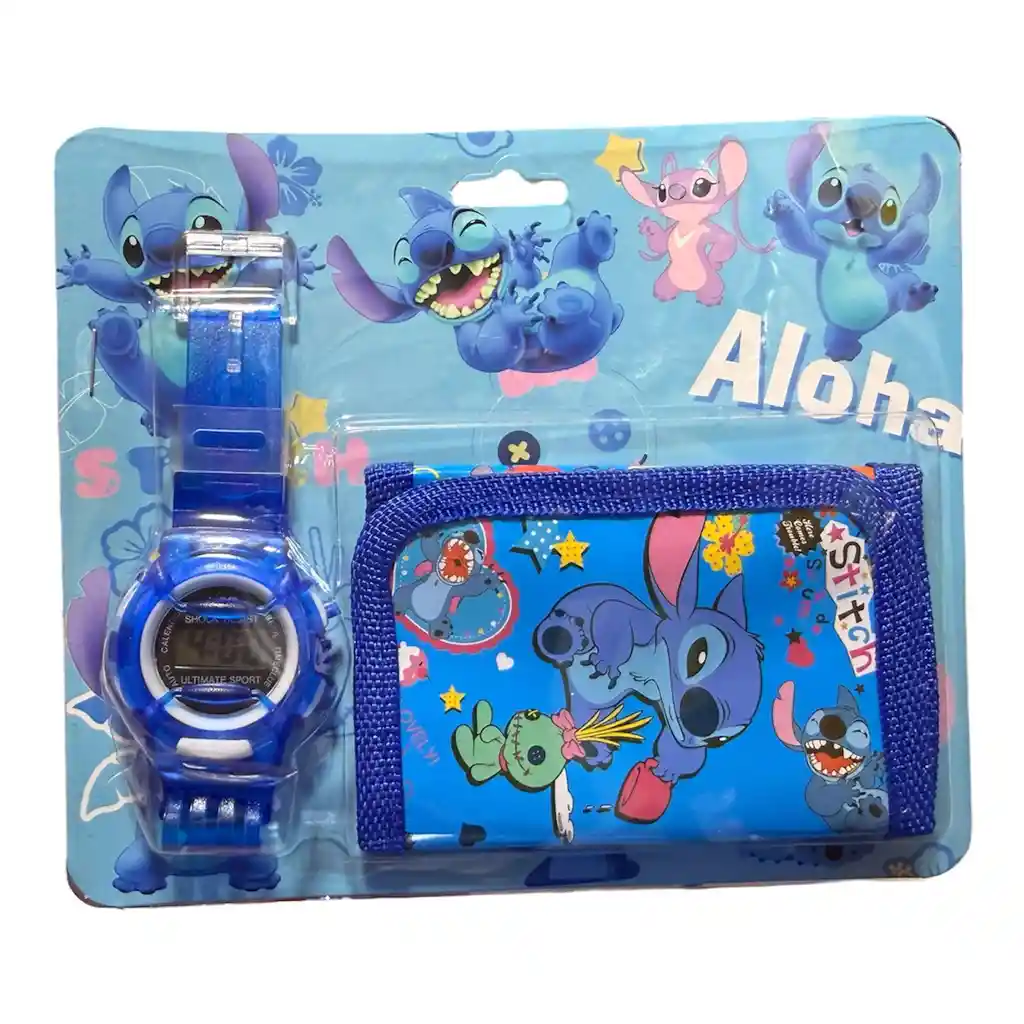 Este adorable set de Stitch es el detalle ideal para cualquier fiesta temática o celebración infantil ya que captura toda la magia y diversión del personaje favorito de Lilo & Stitch en un vibrante tono azul. En este paquete vienen 2 unidades que incluyen un resistente reloj digital deportivo con correa ajustable y una billetera de lona con cierre de velcro que luce un diseño artesanal y colorido perfecto para que los niños guarden sus ahorros de forma segura. Su presentación en un kit de cumpleaños lo convierte en un premio de piñata o regalo especial que destaca por su practicidad y estilo único para cualquier fan de la isla de Hawái. Ten en cuenta que los estampados específicos de la billetera o el diseño exacto del empaque pueden presentar variaciones según la disponibilidad de la tienda pero siempre manteniendo la esencia encantadora de Stitch.