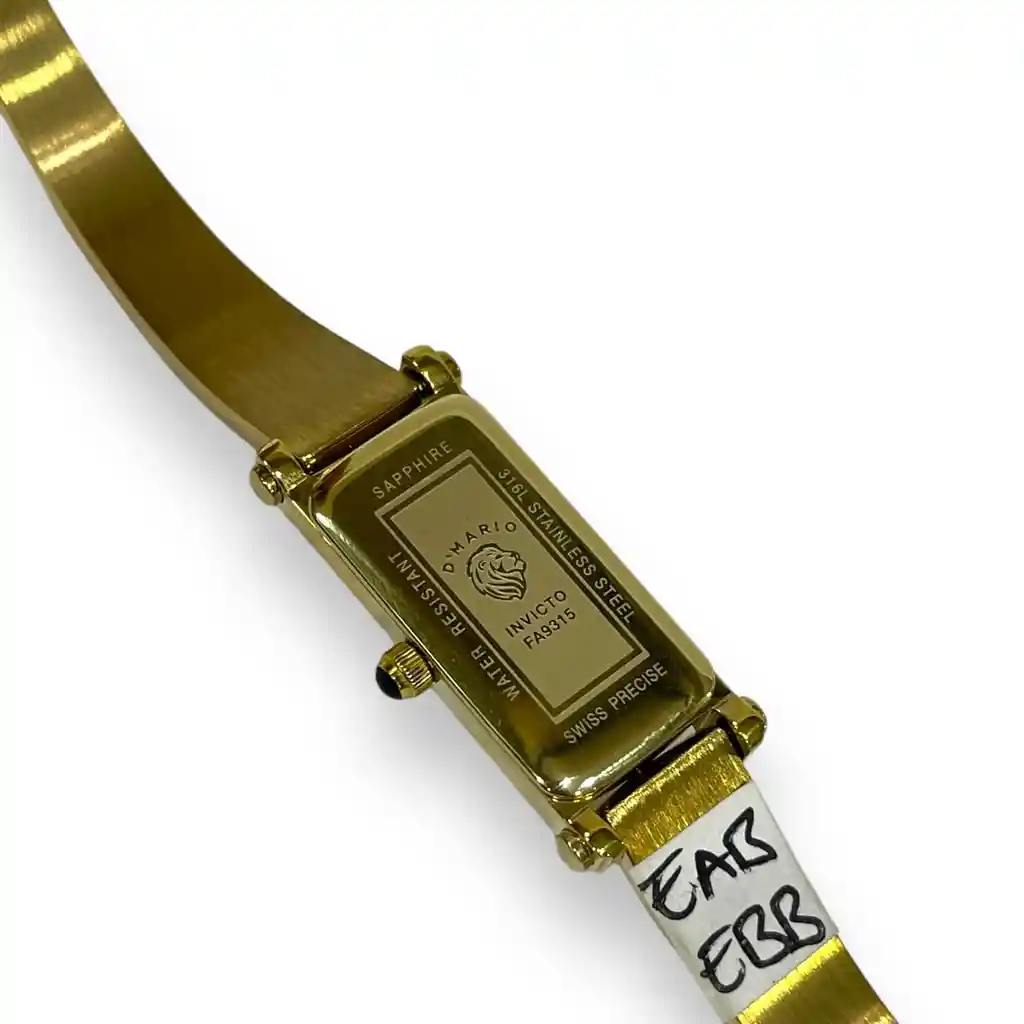 Reloj original tipo aro rectangular para Dama marca Dmario Ref. FA9315 Vidrio zafirado (no se raya o solo lo raya un diamante) Enchapado en oro de 18kl Maquinaria Suiza Incluye estuche original Estilo: Elegante Resiste al agua: solo para lavado de manos Tamaño de la caja: 16mm de ancho x 30mm de largo Garantía del vendedor: 12 meses