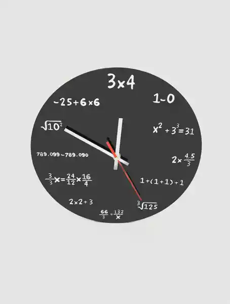 DESCRIPCIÓN Reloj analógico de pared con formulas, decora tus paredes con este reloj original! Funciona con 1 pila AA (no incluida). MEDIDAS 30 cm MATERIALES Plástico y metal CÓDIGO (SKU) 336788