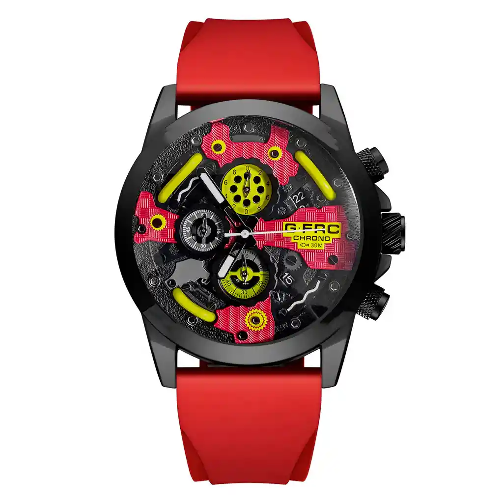 Los mejores relojes te los trae la marca G-Force con sus sorprendentes estilos que definitivamente te enamoraran. Todos sus diseños son inspirados en la comodidad y satisfacción del cliente, ofreciéndote relojes con materiales de la más alta calidad, estilos innovadores y de cualidades inigualables. El reloj G-Force es un accesorio indispensable que cumplirá con todas las expectativas que buscas en un reloj, uniendo lo mejor de la moda y destacando tu belleza a la hora de portarlo, con su correa elegante de lujo te brinda un toque refinado para lucir y combinar muy bien con todos tus looks diarios. /// El reloj incluye su estuche original y tarjeta de garantía. /// Ficha Técnica Pantalla Análoga Funcional Resistencia al agua de 3ATM (solo exposición accidental al agua No ducha, No se puede sumergir, No usar en actividades acuáticas). Tipo de cierre: Hebilla de Gancho Material de la caja: Metal Ancho correa: 2.1 cm Diámetro: 4.5 cm Material de la correa banda: Goma Longitud de La correa: 24 cm ajustable Peso neto: 120gr Términos de garantía:_Para defectos de fábrica o retractos: _Por favor revise el producto apenas lo reciba y antes de usarlo. No aplican ley de retracto o defectos de fábrica luego de usar el producto. Se manejan máximo 5 días para reportar defectos de fábrica (por ejemplo, piezas faltantes, rotas, etc). En cuanto a maquinaria se da tres meses de garantía, es decir el buen funcionamiento del producto. Para hacer efectiva la devolución el producto debe devolverse con el empaque original, el cual debe estar en buen estado, incluir todos los documentos y las partes completas y sin daños.