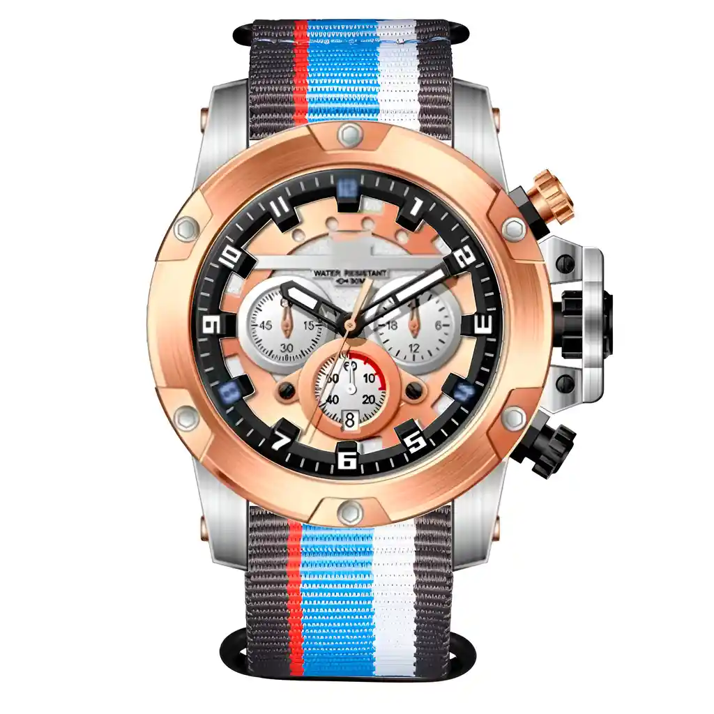 Los mejores relojes te los trae la marca G-Force con sus sorprendentes estilos que definitivamente te enamoraran. Todos sus diseños son inspirados en la comodidad y satisfacción del cliente, ofreciéndote relojes con materiales de la más alta calidad, estilos innovadores y de cualidades inigualables. El reloj G-Force es un accesorio indispensable que cumplirá con todas las expectativas que buscas en un reloj, uniendo lo mejor de la moda y destacando tu belleza a la hora de portarlo, con su correa elegante de lujo te brinda un toque refinado para lucir y combinar muy bien con todos tus looks diarios. /// El reloj incluye su estuche original y tarjeta de garantía. /// Ficha Técnica Pantalla Análoga Funcional Resistencia al agua de 3ATM (solo exposición accidental al agua No ducha, No se puede sumergir, No usar en actividades acuáticas). Tipo de cierre: Hebilla de Gancho Material de la caja: Metal Ancho correa: 2.1 cm Diámetro: 4.5 cm Material de la correa banda: Nylon Longitud de La correa: 24 cm ajustable Peso neto: 125 gr Términos de garantía:_Para defectos de fábrica o retractos: _Por favor revise el producto apenas lo reciba y antes de usarlo. No aplican ley de retracto o defectos de fábrica luego de usar el producto. Se manejan máximo 5 días para reportar defectos de fábrica (por ejemplo, piezas faltantes, rotas, etc). En cuanto a maquinaria se da tres meses de garantía, es decir el buen funcionamiento del producto. Para hacer efectiva la devolución el producto debe devolverse con el empaque original, el cual debe estar en buen estado, incluir todos los documentos y las partes completas y sin daños.