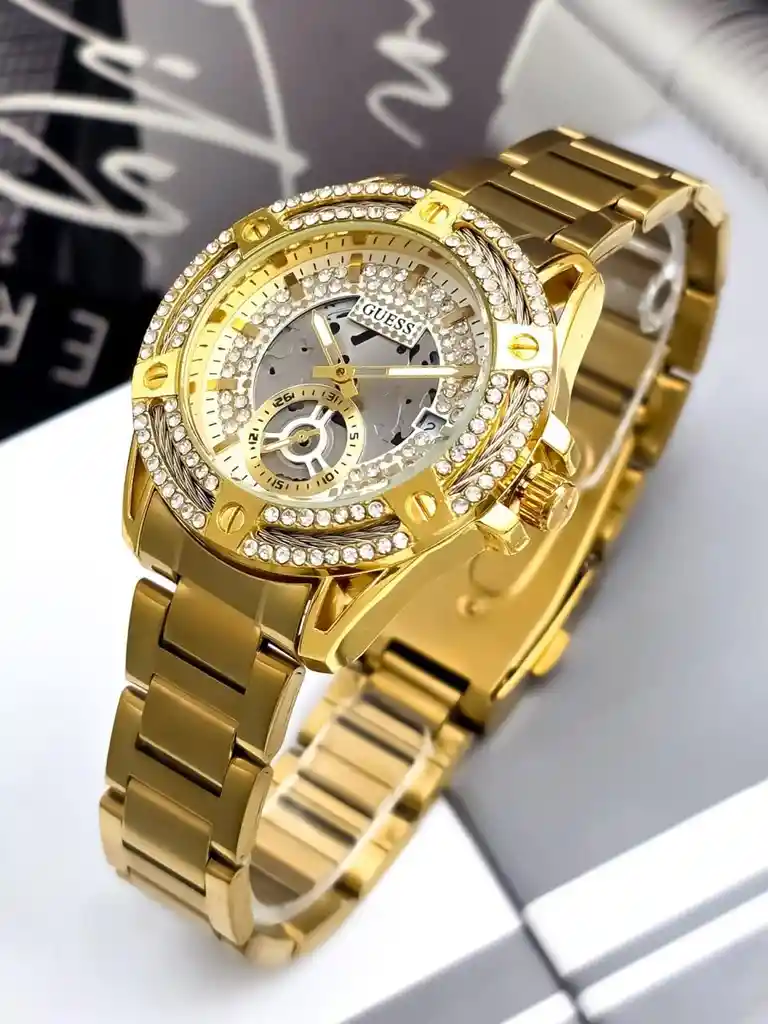 Reloj Guess De Dama Perlado Dorado 🚩 Exclusivo para DAMA 🚩Manilla metálica 🚩segundero lateral 🚩calendario 🚫 NO CUBRE GARANTÍA POR FILTRACIÓN DE AGUA 🚫 ⚠️ NO CUBRE GARANTÍA POR MANIPULACIÓN O MAL USO EN LAS PIEZAS EXTERNAS DEL RELOJ ⚠️