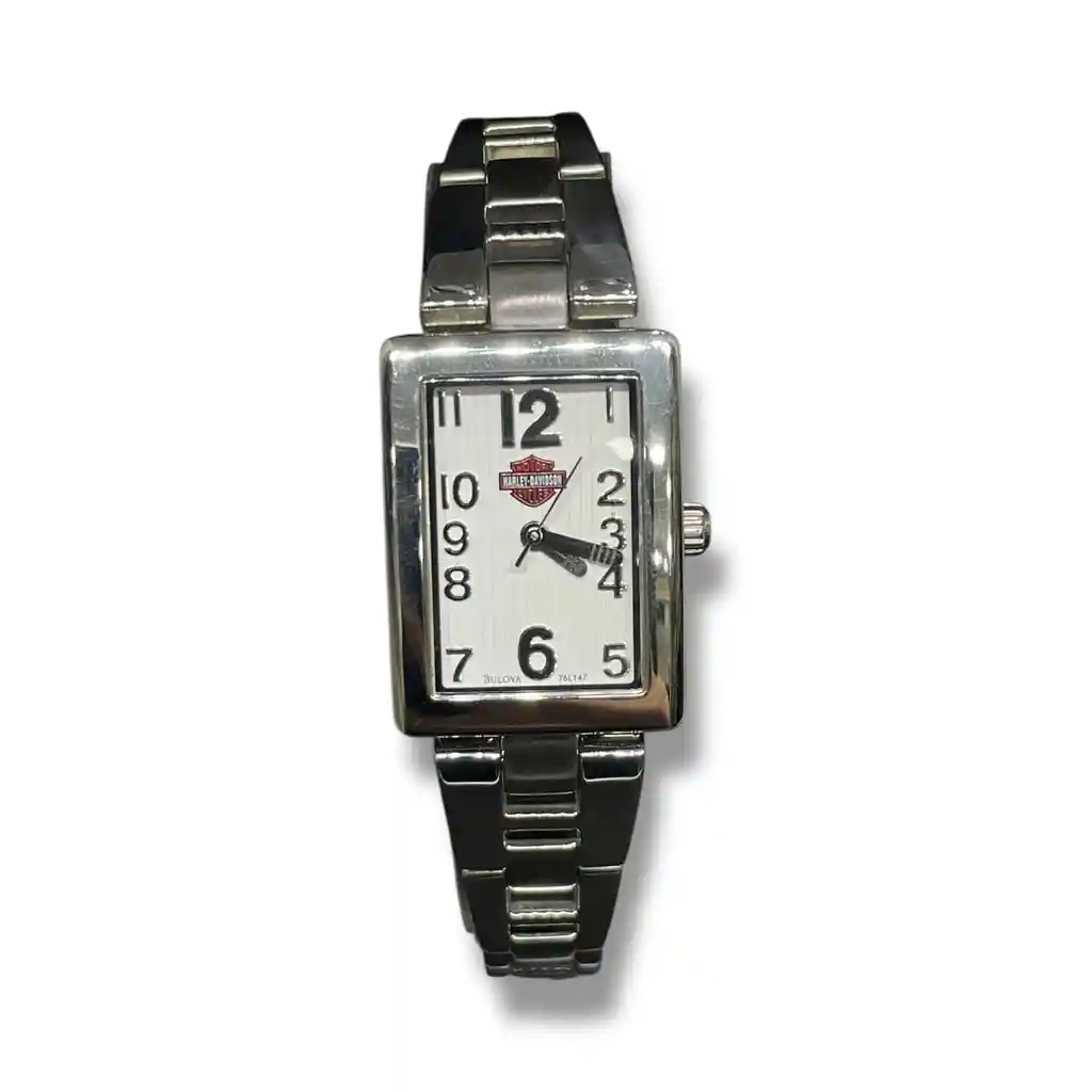 Descubre el estilo audaz y elegante del reloj Harley Davidson Ref. 76L147, una pieza que fusiona el legado de una marca icónica con la sofisticación moderna. Diseñado para quienes buscan destacar, este reloj con caja rectangular de acero inoxidable y fondo blanco con el logotipo clásico de Harley Davidson, ofrece un look refinado y atemporal. Su correa de acero con cierre tipo joyería garantiza un ajuste cómodo y seguro, ideal para uso diario o como accesorio elegante. Perfecto para fanáticos de la marca y amantes de la relojería con carácter.