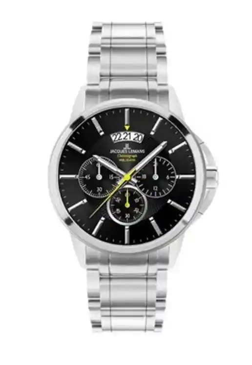 Genero:Hombre Movimiento:Quarz Calibre:Epson VD53B Analogo/Digital:Analogo Funcion :Cronógrafo: indicación de 24 horas, segundo contador y contador de minutos, función de contrapeso, fecha, dial con estructura Tamaño de la caja:42mm Material caja:acero inoxidable sólido Material Cristal:cristal cristex endurecido Material correa/pulsera:acero inoxidable sólido Color del pulso:acero inoxidable sólidoColor tablero:Negro Peso:146 Resistencia al agua:10 ATM Garantia 12 meses por defectos de fabrica